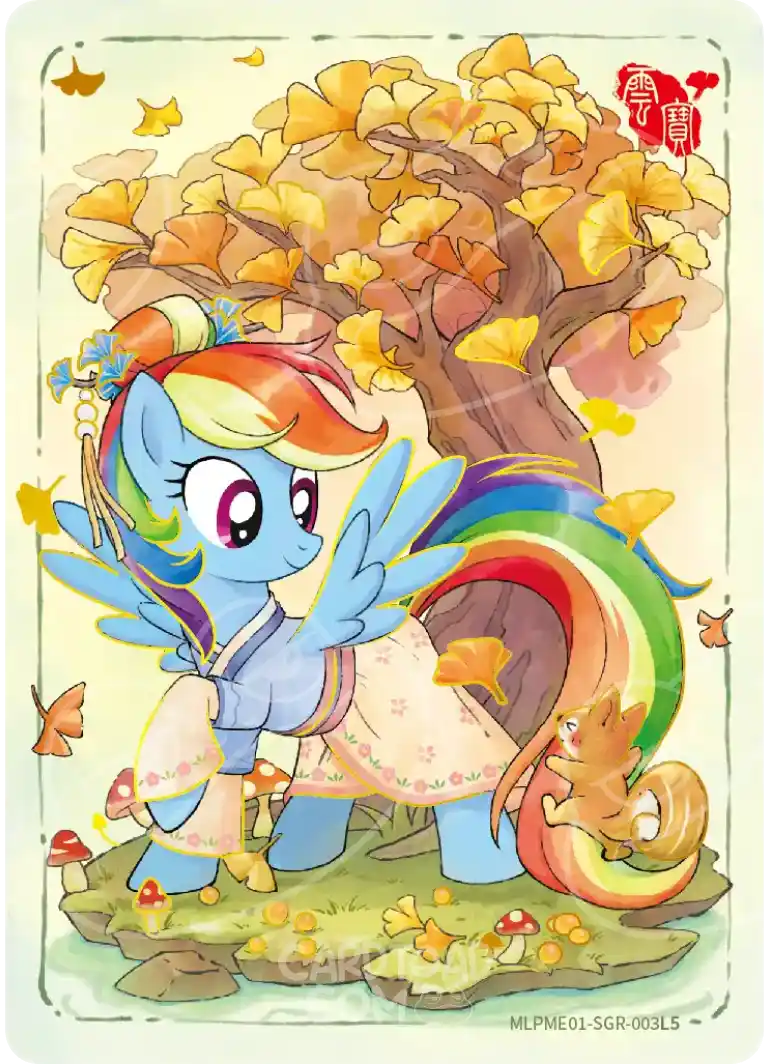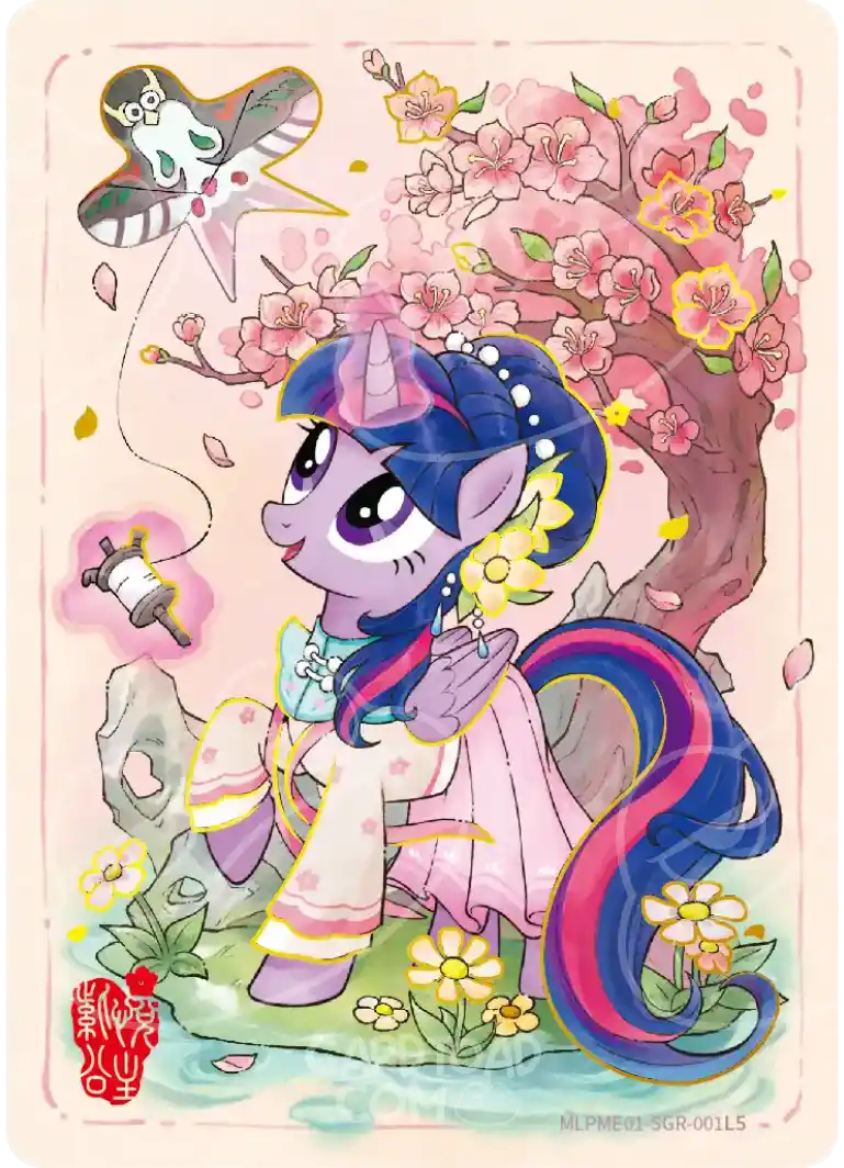 Princess Twilight SparkleSGR is the flagship SGR of ME01 — the card every new collector asks about first. Rainbow DashSGR is arguably the most striking in terms of colour and composition, with the gold foil complementing her colour scheme better than any other character in the set.